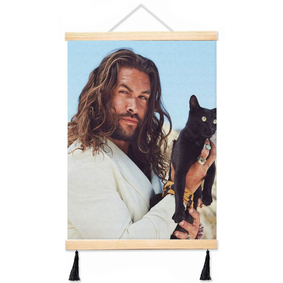 (Jason Momoa_9962) Canvas Poster Hanging Kit Frame 16x20 Inch Wall Hanger with Tassels Art Home Decor Funny for Classroom Kids Bedroom Office Christma
