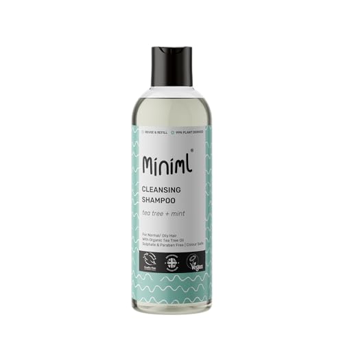 Miniml Natural Cleansing Hair Shampoo 500ml- Tea Tree & Mint, Purifying Formula, Normal to Oily Hair, Suitable for Sensitive Scalp & Skin, Sulphate & Paraben Free, Vegan & Cruelty Free