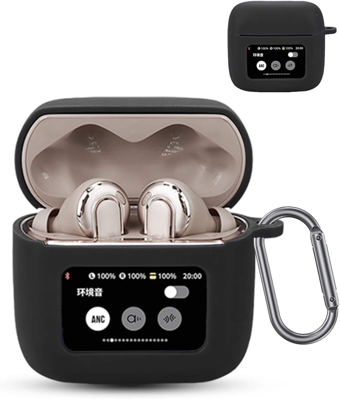 (Black) For JBL Live Pro 2 TWS JBL Live Free 2 TWS Bluetooth-compatible Earbuds Silicone Case Cover Drop-Proof Soft Protector with Anti-Lost Buckle