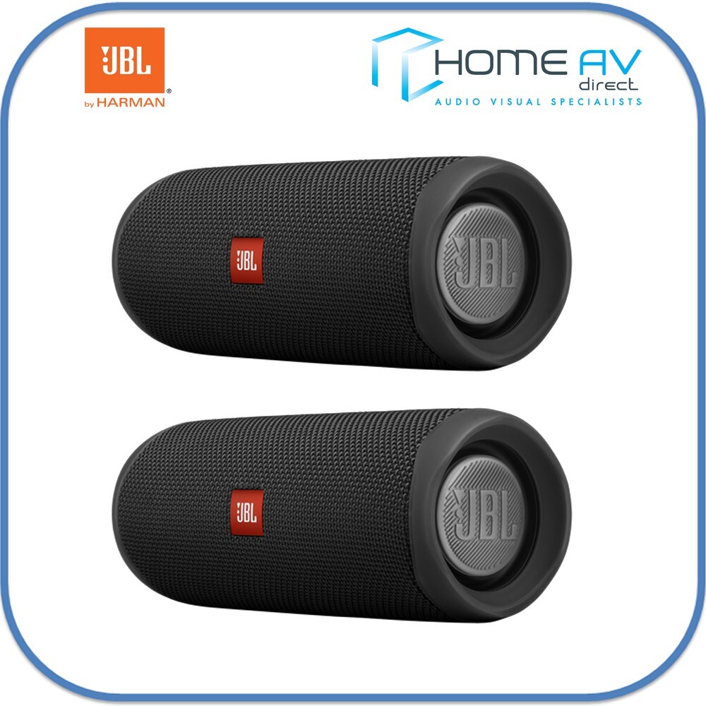 JBL FLIP 5 Black Waterproof Bluetooth 2 x Speakers Pair PartyBoost Sync Bundle