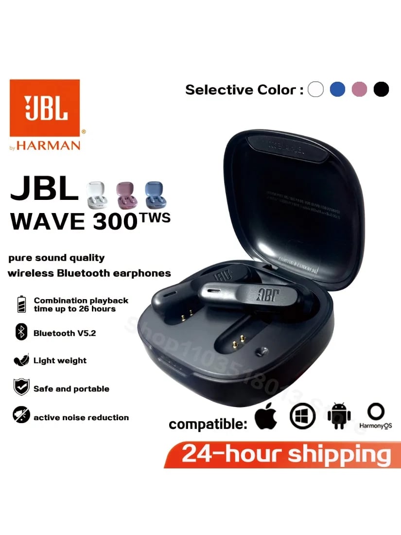 Original JBL Wave 300 TWS True Wireless Earbuds Bluetooth Earphones W300 Bass Sound Sports Earbud with Mic with Free cover