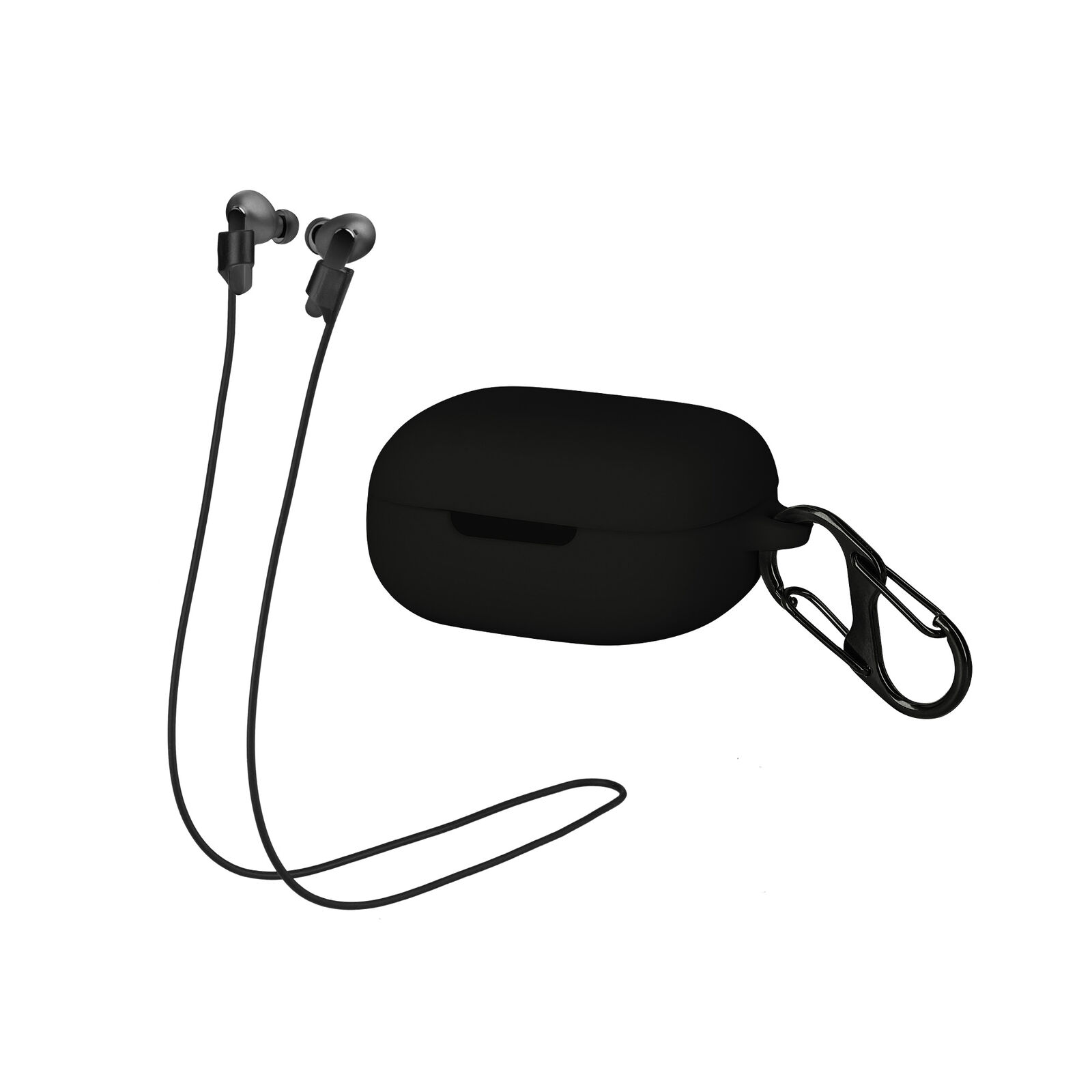 Black Silicone Case Earbuds Pouch Cover w/ Keyrin Hook Fit for JBL Live Pro 2TWS