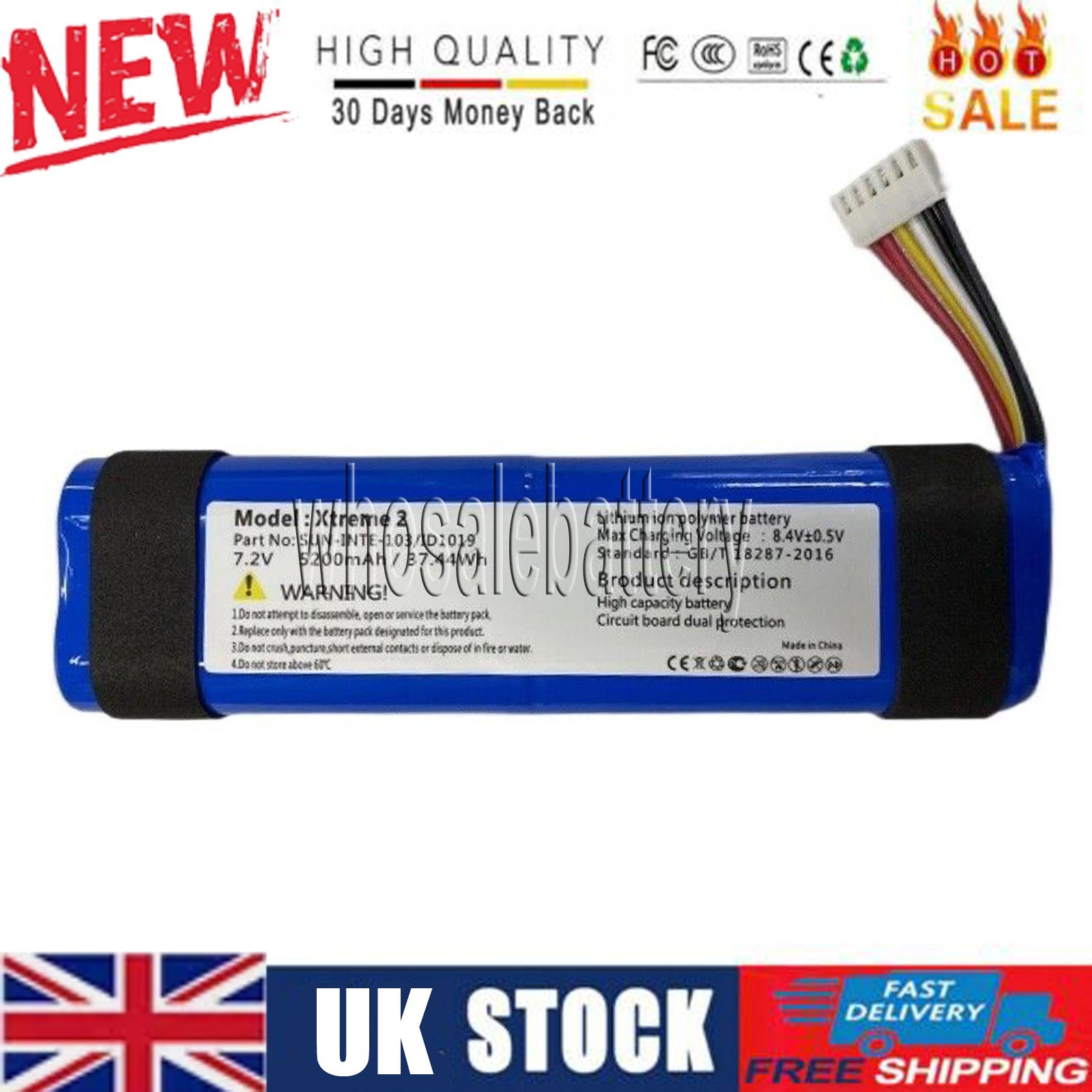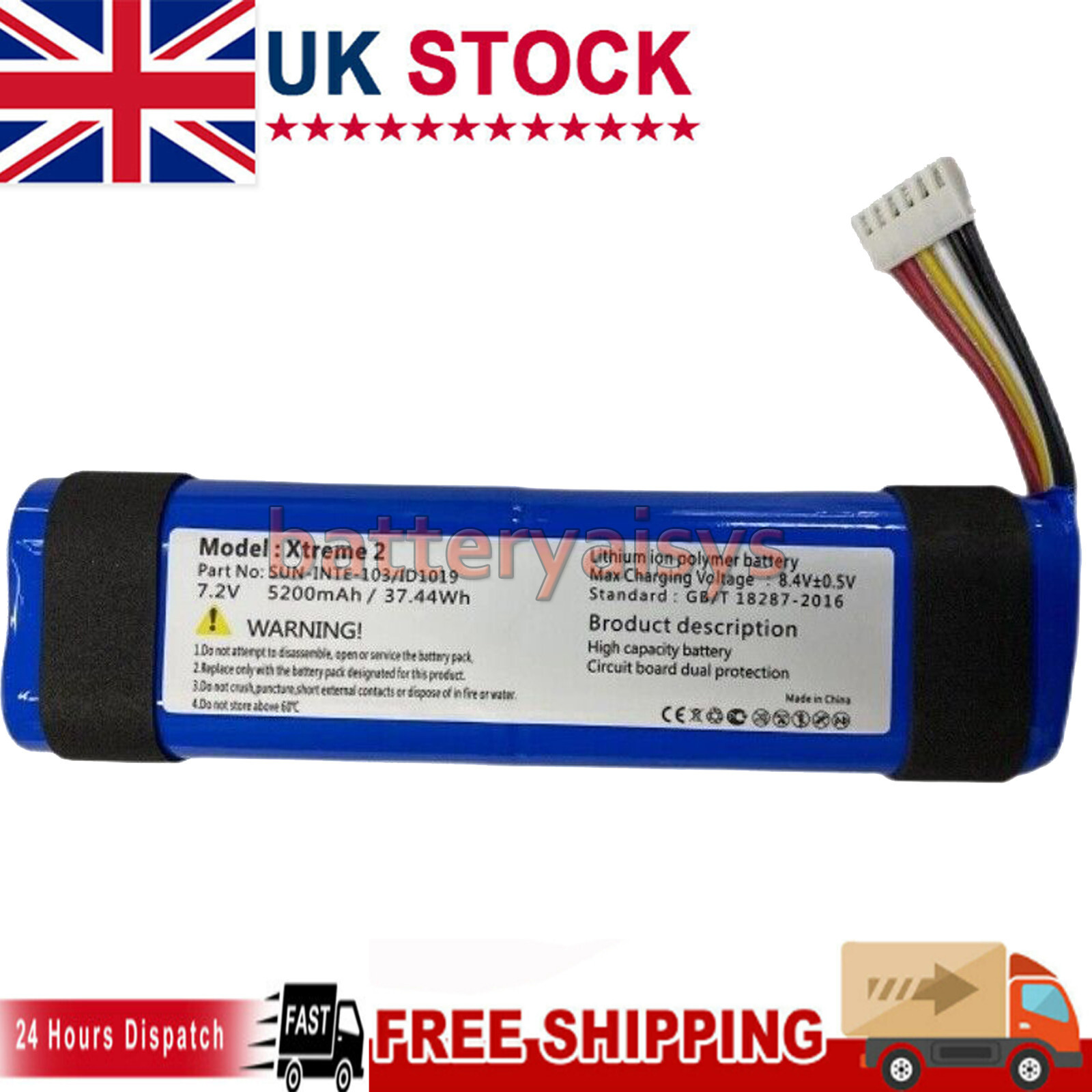 For JBL Xtreme 3 7.40V 5200mAh Lithium-ion Polymer Battery Replacement Part (Encode: GSP-2S2P-XT3A) (without Logo)