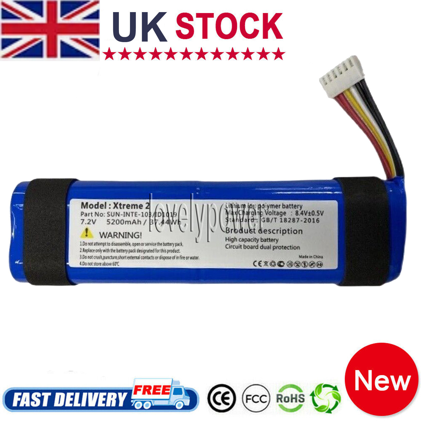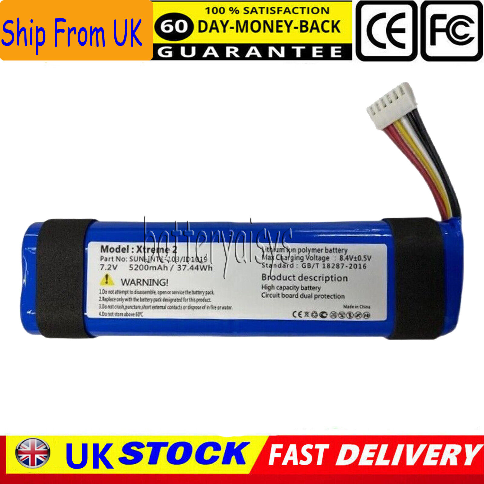 Replacement Battery for JBL Xtreme 2, Xtreme 3, Battery SUN-INTE-103 5200mAh