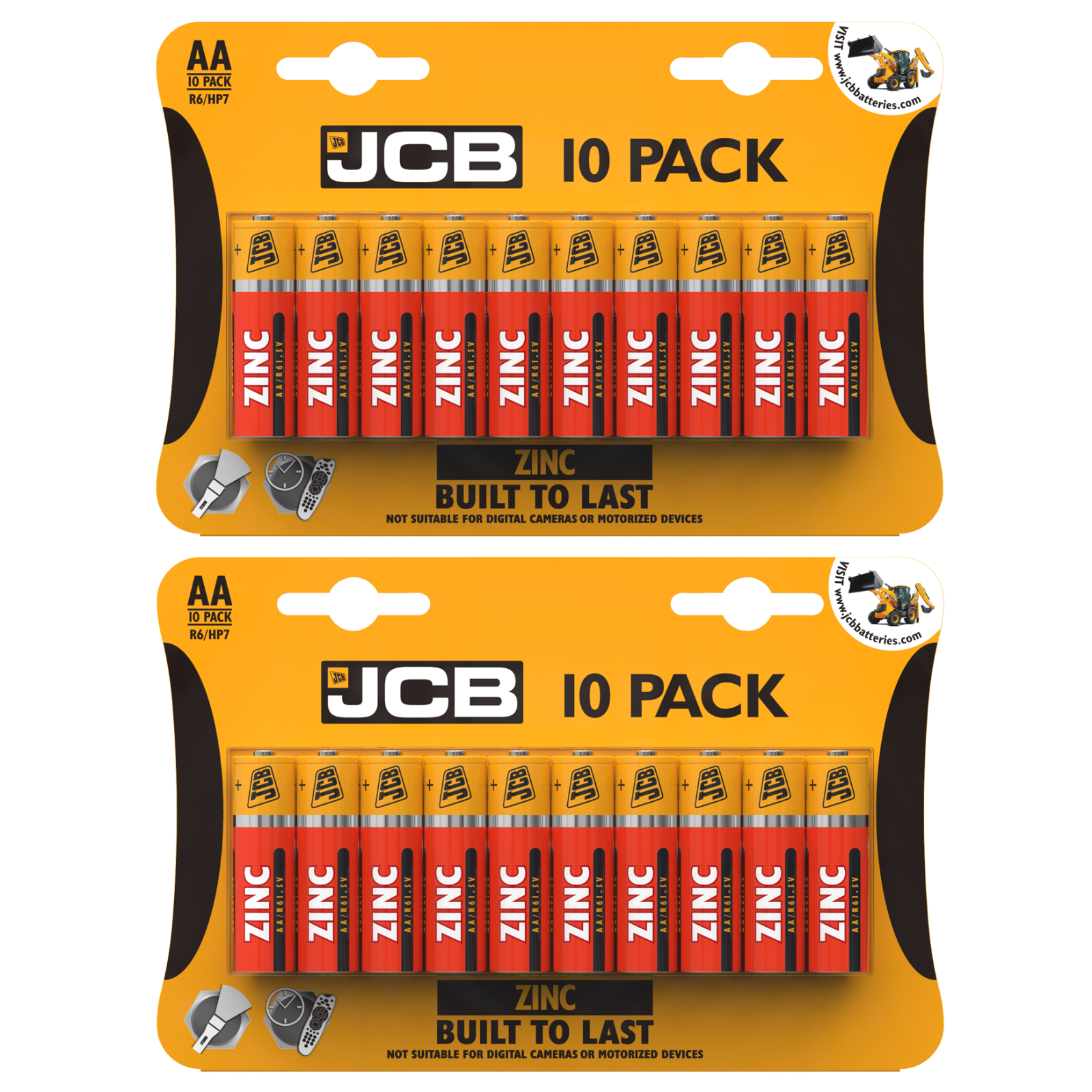 Pack of 20 JCB AA Zinc Batteries Ideal for Clocks Toys and Small Appliances