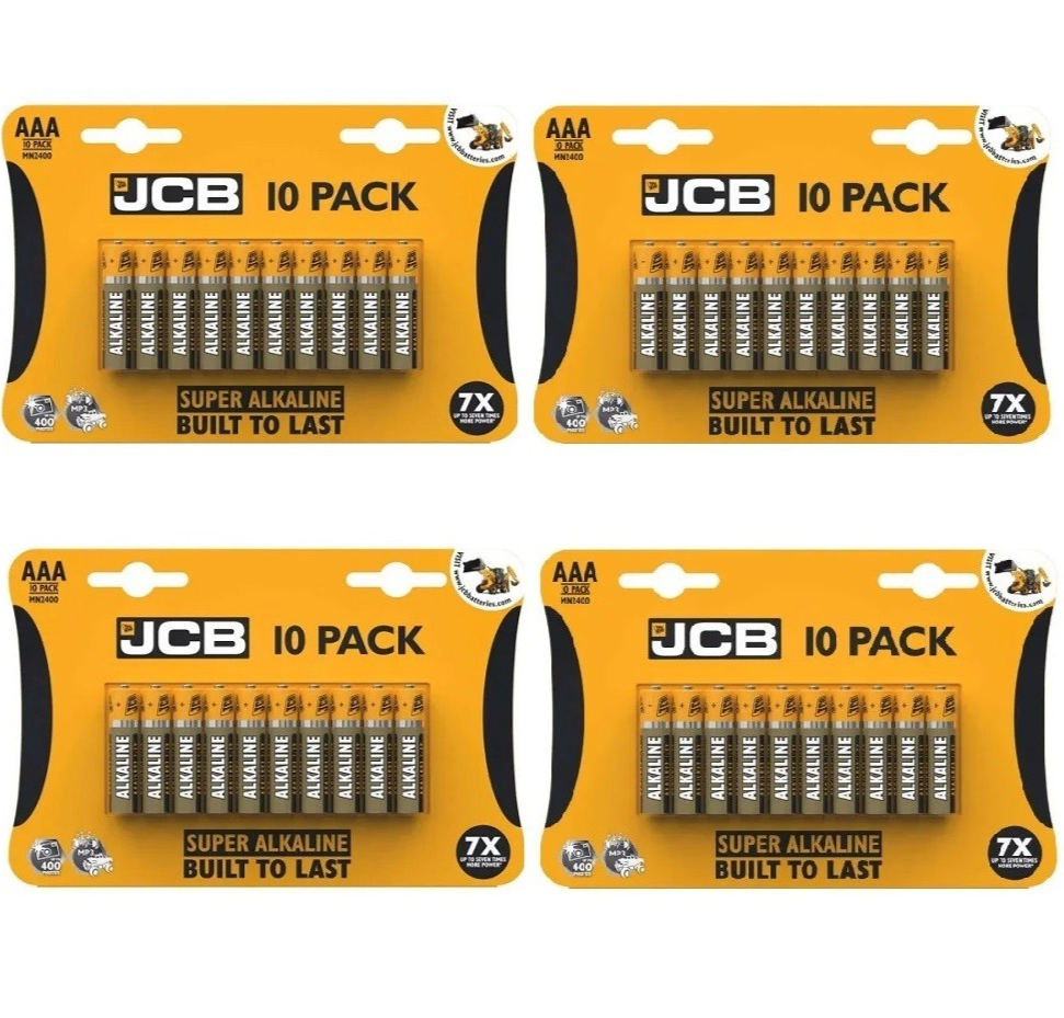 40 x JCB AAA Super Alkaline Batteries Built To Last for Toys Torches etc S9683x4