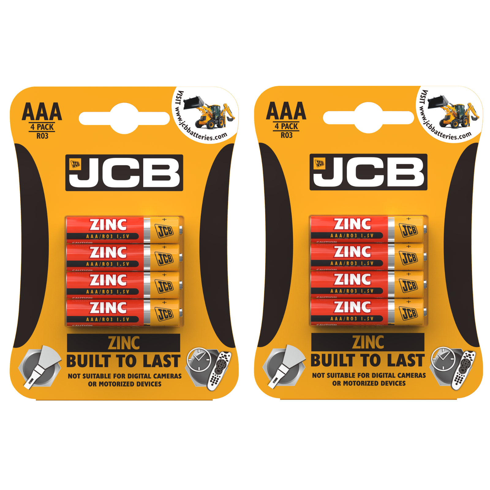 Pack of 8 JCB AAA Zinc Batteries Ideal for Clocks Toys and Small Appliances