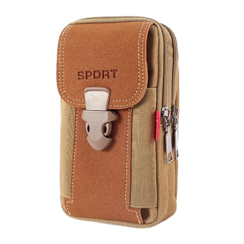 Zanthicia Men S Mobile Phone Sports Bag Leather Large Capacity Gift for Friends Exquisite Craftsmanship Male Card Holder Bags, Khaki+Longitudinal