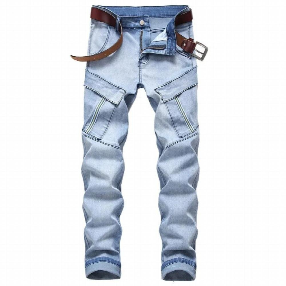 Autumn winter Men Jeans Loose straight Elastic Patch Pocket Cargo Denim Pants Streetwear Slack Hip Hop Jeans Men