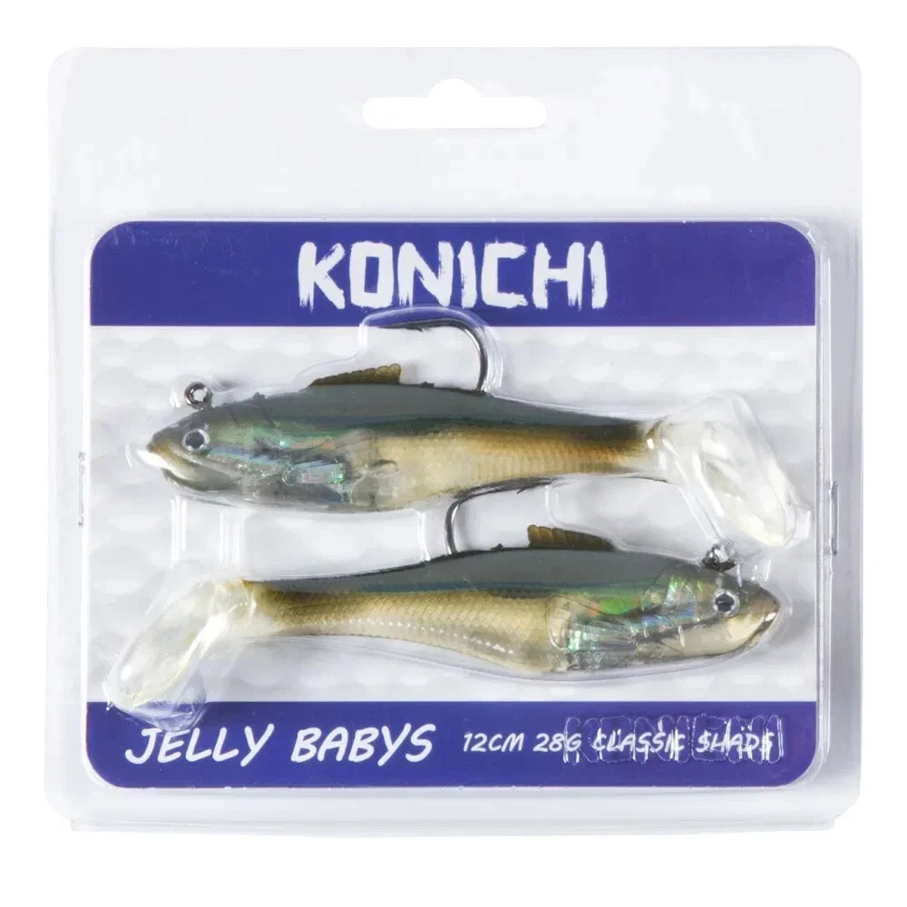 2 x KONICHI Jelly Babies Jelly Shad Fishing Lures - Khaki - 12cm / 12g