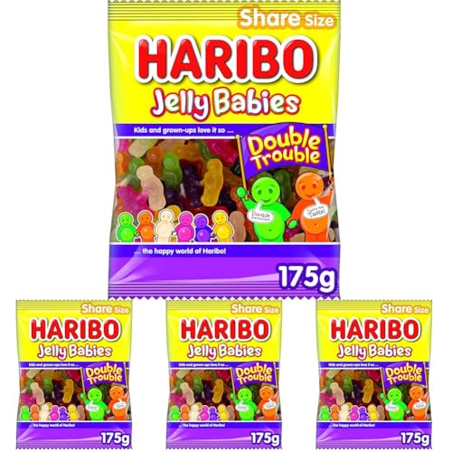 Haribo Jelly Babies Double Trouble Sweets Bag, 175g (Pack of 4)