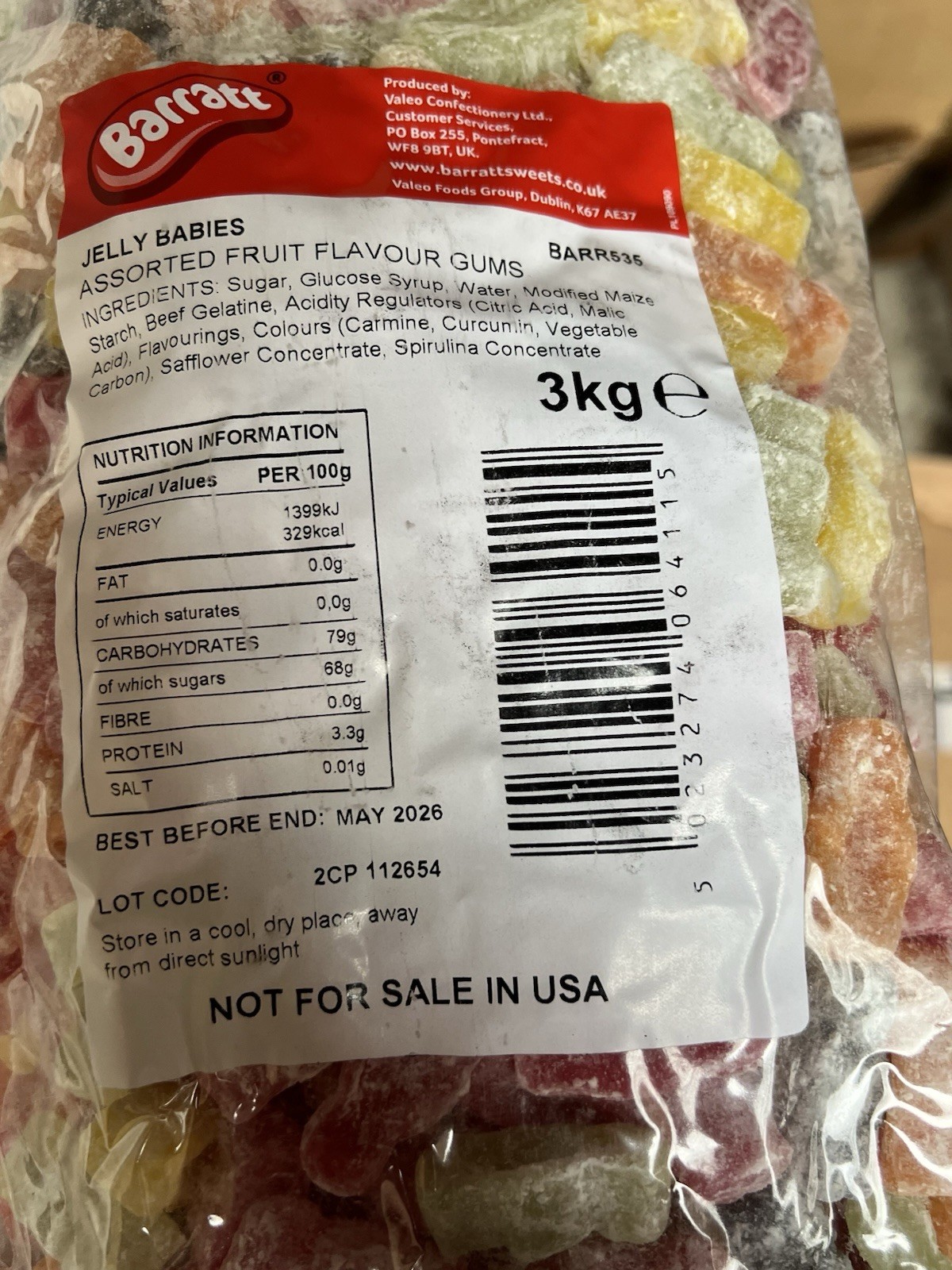Barratt Dusted Jelly Babies 3kg - Traditional Jelly Pick n Mix Sweets BEST PRICE