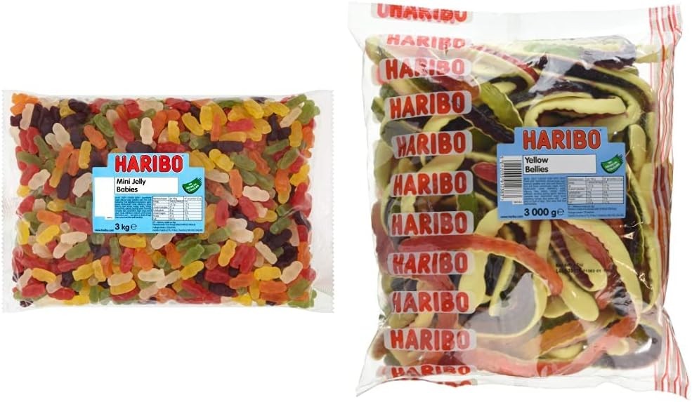 HARIBO Mini Jelly Babies Bulk Bag 3 kg (Pack of 1) 11150 & Yellow Belly Giant S