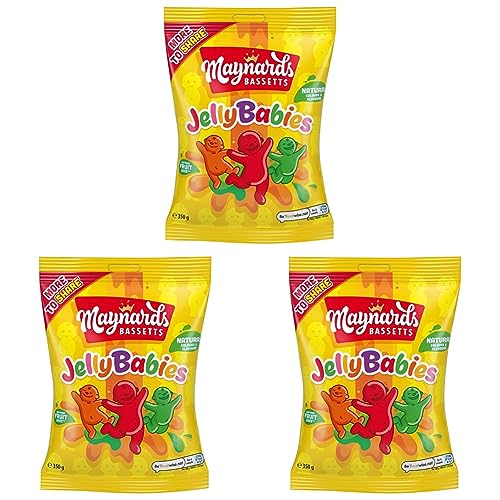 Maynards Bassetts Jelly Babies, Bursting with Fruity Flavours, Soft and Chewy Texture, Sharing Pack, 350g (Pack of 3)