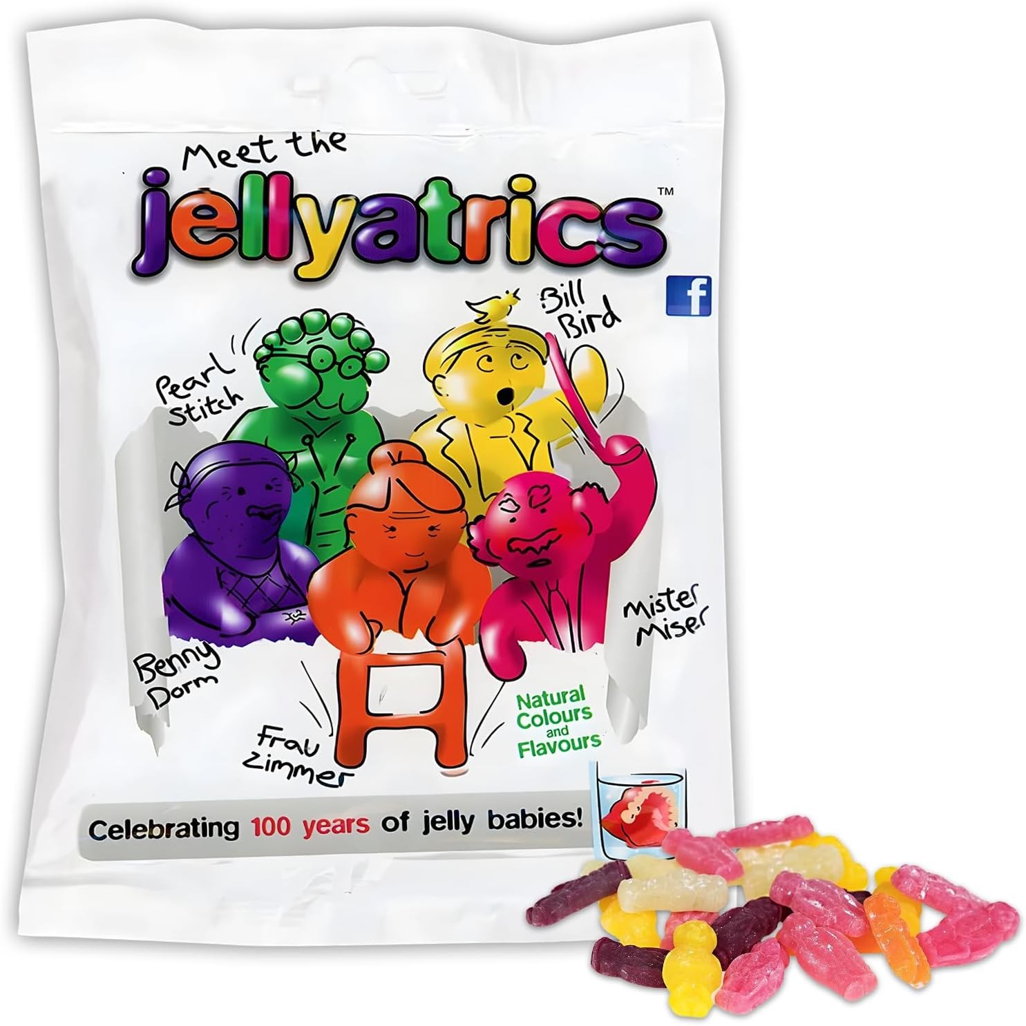 Jellyatrics Jelly Babies Novelty Sweets 180g Fun Gift for Birthdays, Christmas,