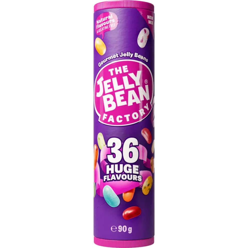 JELLY BEAN FACTORY 36 Huge Flavours Mix - Tube 90g (Pack of 24)