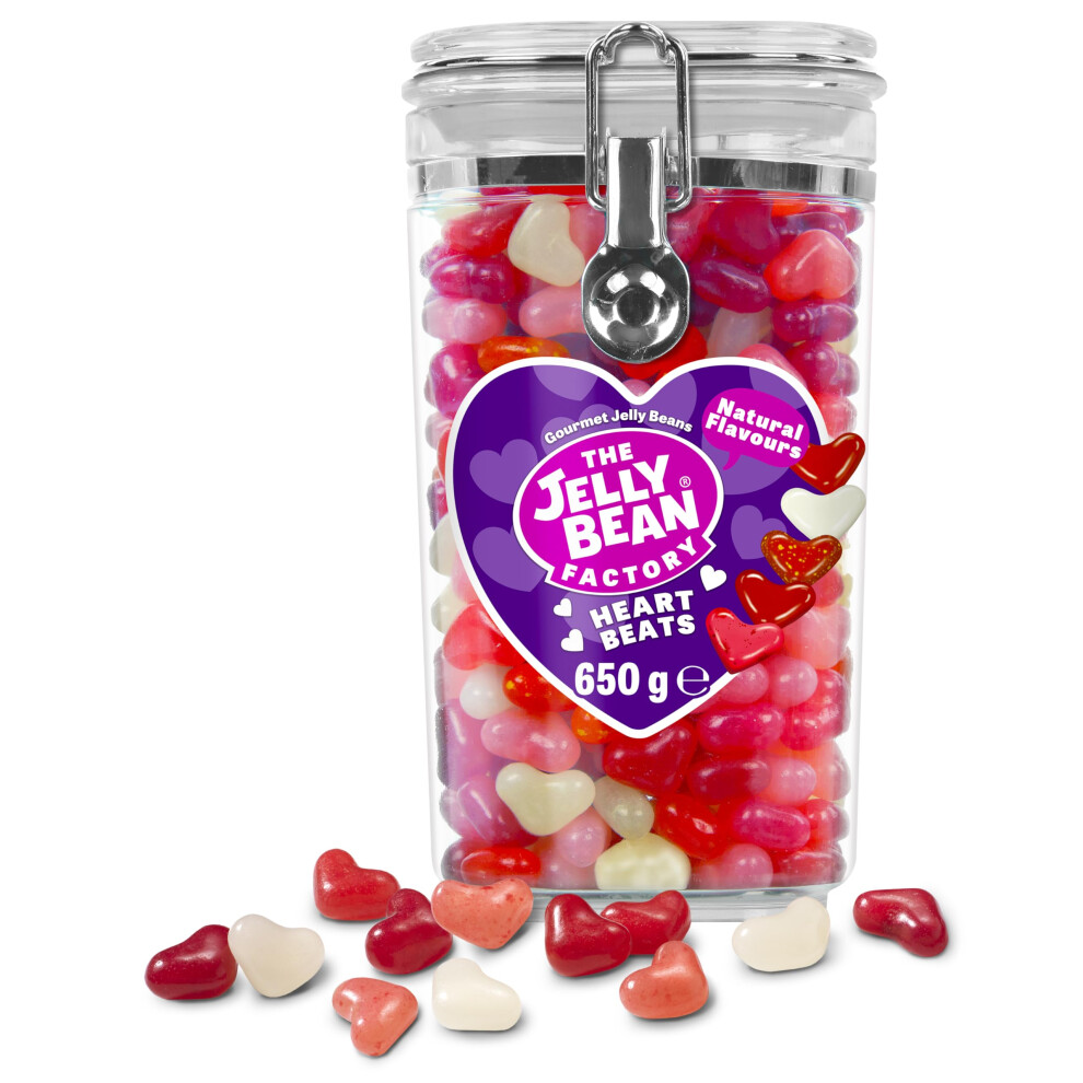 The Jelly Bean Factory, Heart Beats Jelly Beans 650g Jar - Mothers Day, Easter Heart Sweets, 5 Natural, Huge Fruit Flavours, Retro American Sweets -