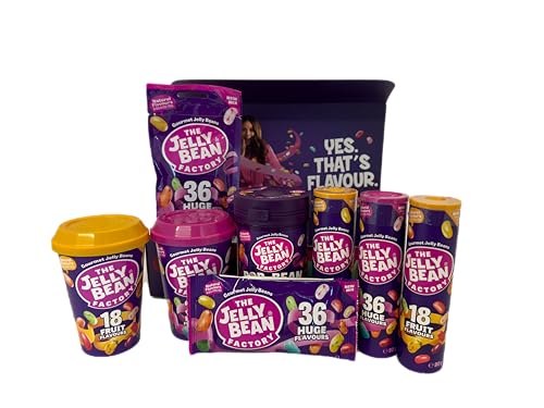 The Jelly Bean Factory Selection Box with Pop-A-Bean Tub - 933g x 1 | 36 Gourmet Mix | 18 Fruit Flavours Mix | Gluten and Gelatine Free | Gifting Candy