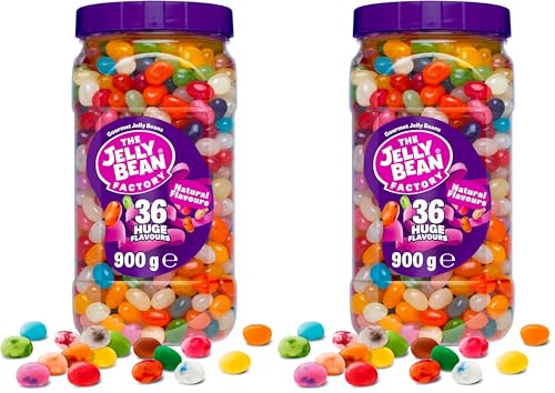 The Jelly Bean Factory, Gourmet Jelly Beans 900 g Jar - 36 Natural, Huge Jelly Fruit Flavours, Chewy Jelly Sweets for Kids(pack of 2)