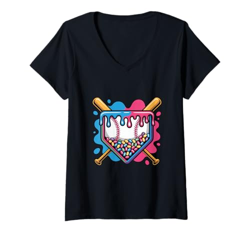 Womens Baseball Jelly Beans Home Plate Dripping Candy Bats V-Neck T-Shirt