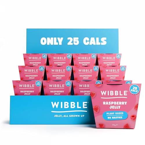 Wibble Jelly Pots, Raspberry, 12 Pack, Plant Based, 25 Cals, Low Calorie, Low Sugar, Vegan, Vegetarian, Jello