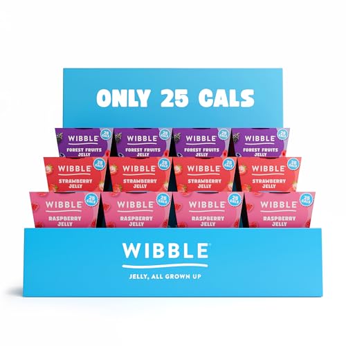 Wibble Jelly Pots, Mixed,12 Pack, Plant Based, 25 Cals, Low Calorie, Low Sugar, Vegan, Vegetarian, Jello, Strawberry, Raspberry, Forest Fruits