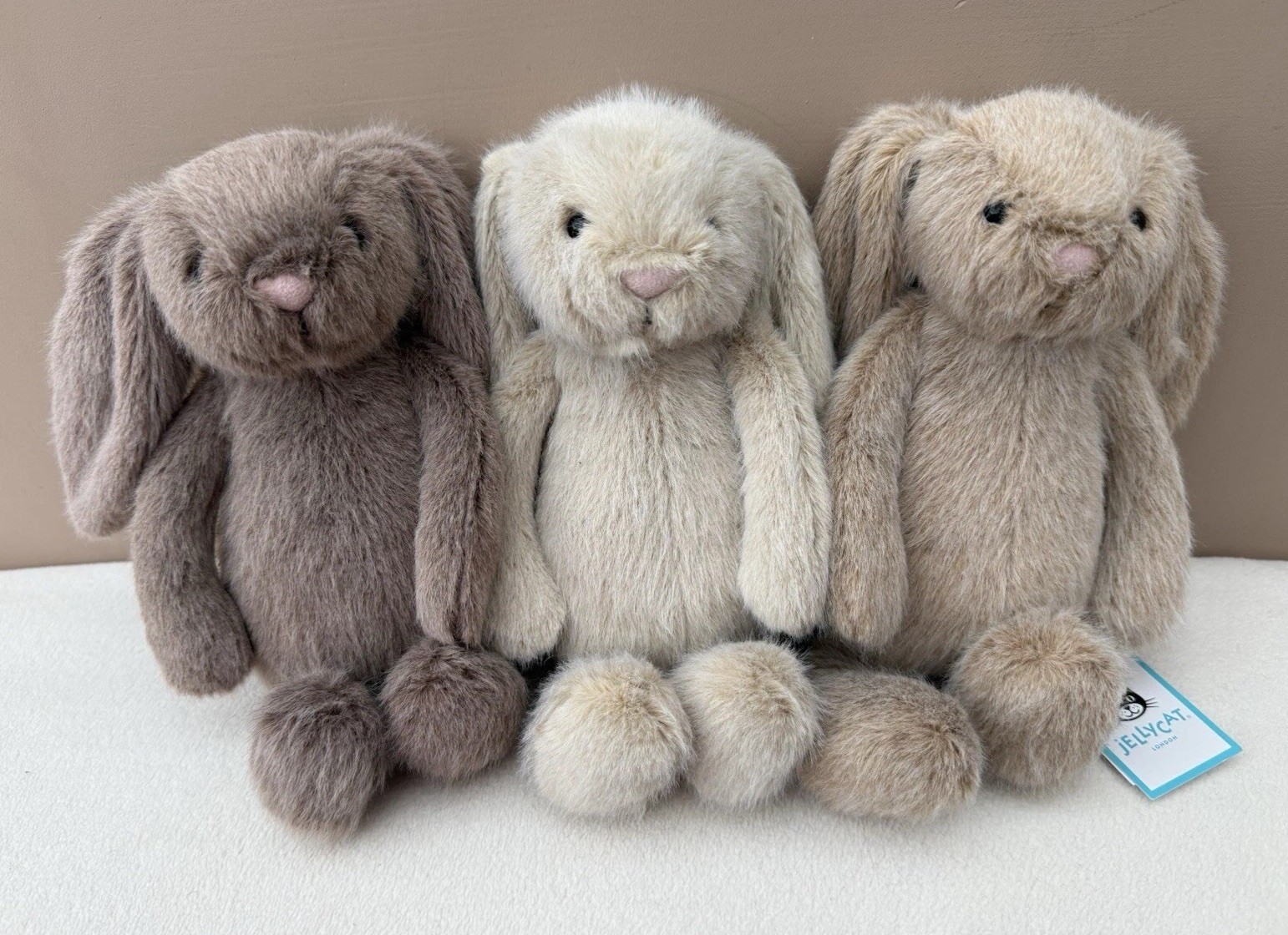 NEW Jellycat Bundle 3 Small Bashful Flufflet Bunny Wheat Oat Fawn Soft Toys BNWT