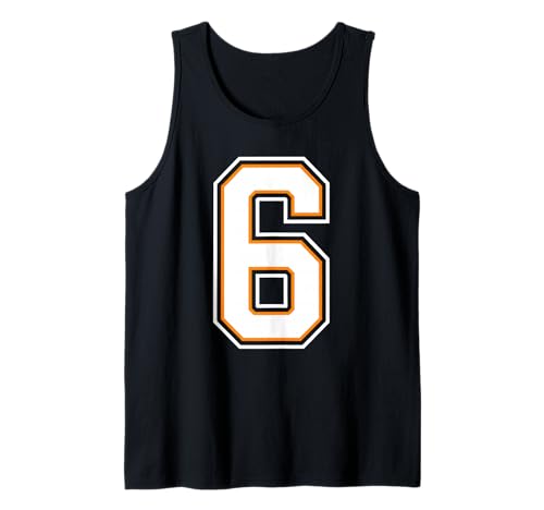 Number 6 Orange and Black Outline Retro Jersey Birthday Tank Top