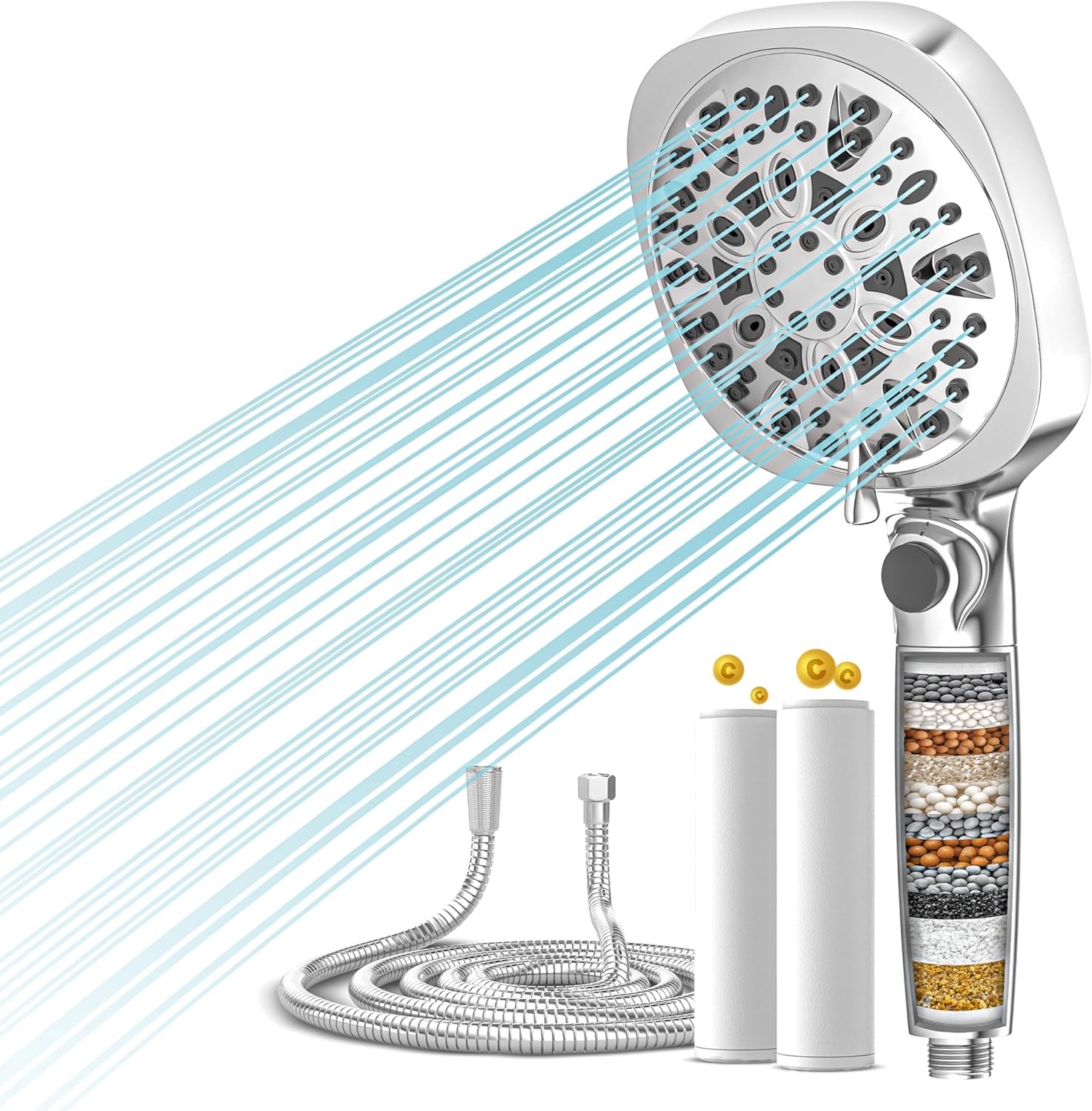 Filtered Shower Head and Hose, 8 Spray Modes + Jet Wash, High Pressure Handheld
