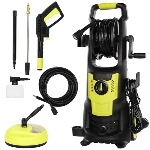 Pressure Washers 1800W,140Bar, Jet Washers Pressure Washers with Hose Reel Adjustable Nozzles & Foam Tank Power Cord, Power Washer for Yard, Cars, Garden, Furniture.
