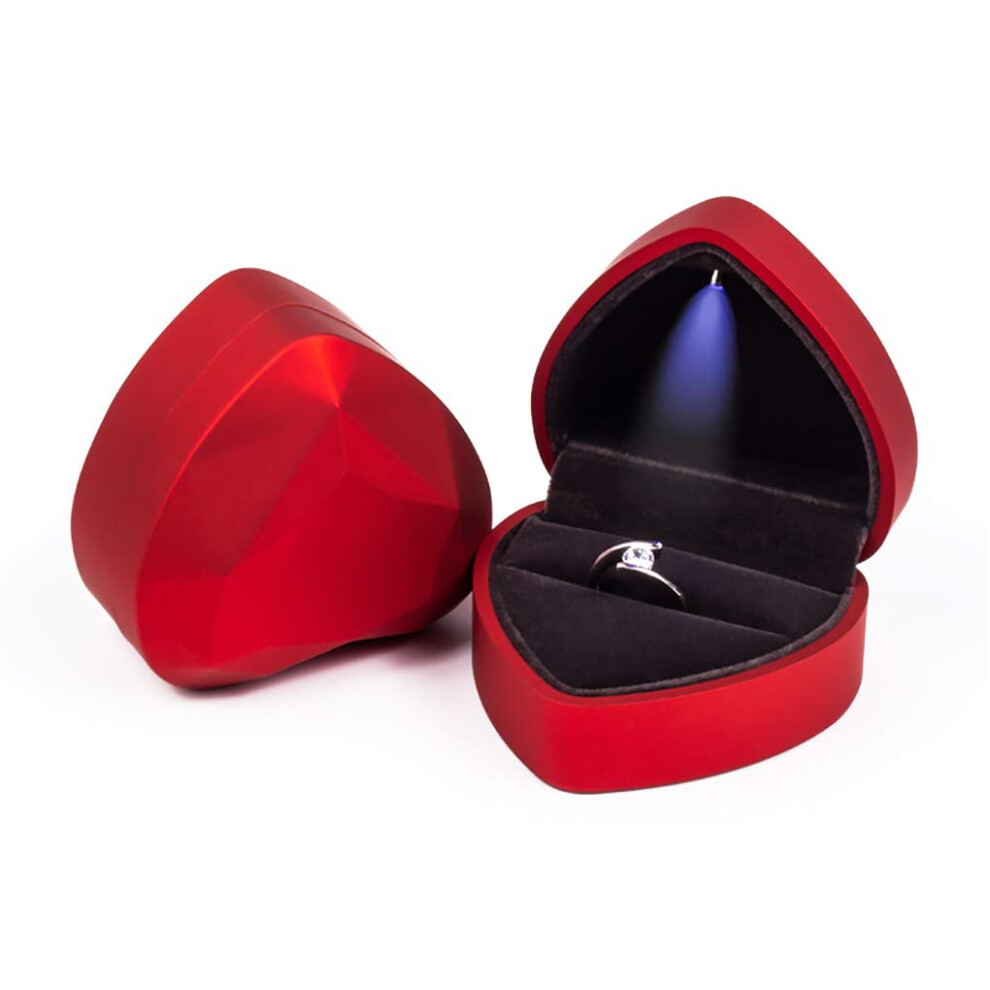 ROLIN ROLIN HEART -HEART PLANT LED LED LIGHTED WEDDING EARLI BOX Jewelery Box Showcase Gift Boxes Offer Engagement Wedding Anniversary (Red)