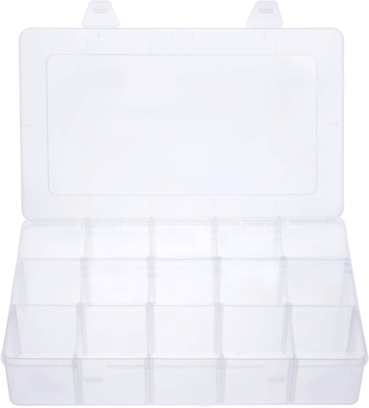 Clear Plastic Jewellery Storage Box 15 Large Grids Adjustable Dividers