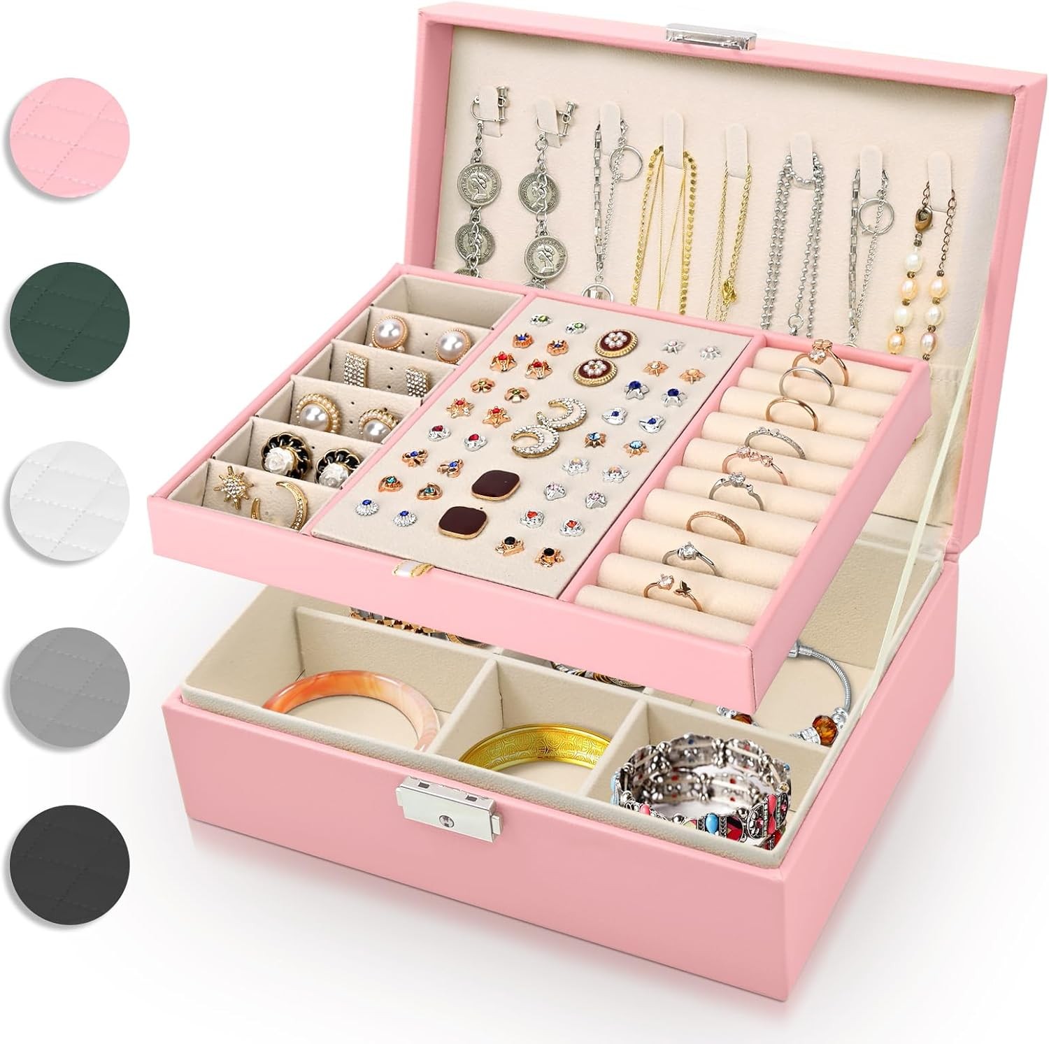 Jewellery Box for Women, Travel Jewellery Box 2 Layers Large Jewelry Organizer