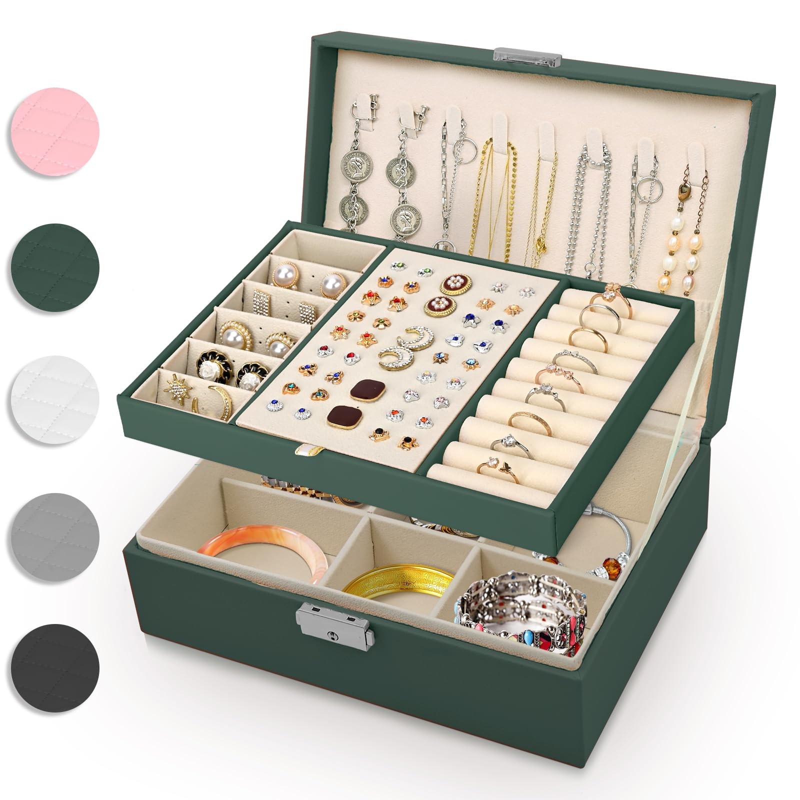 Eucomir Jewellery Box for Women, Travel Jewellery Box 2 Layers Large Jewelry ...