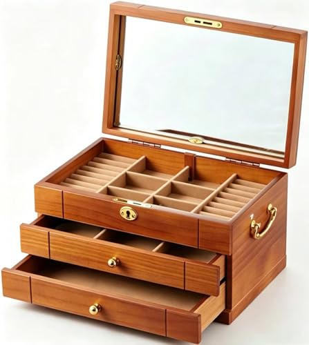 Jewelry Boxes for Women Wooden, Lockable Solid Wood Jewelry-Box, Large Storage for Rings, Earrings, Necklaces & Bracelets(A,3 Layer A)