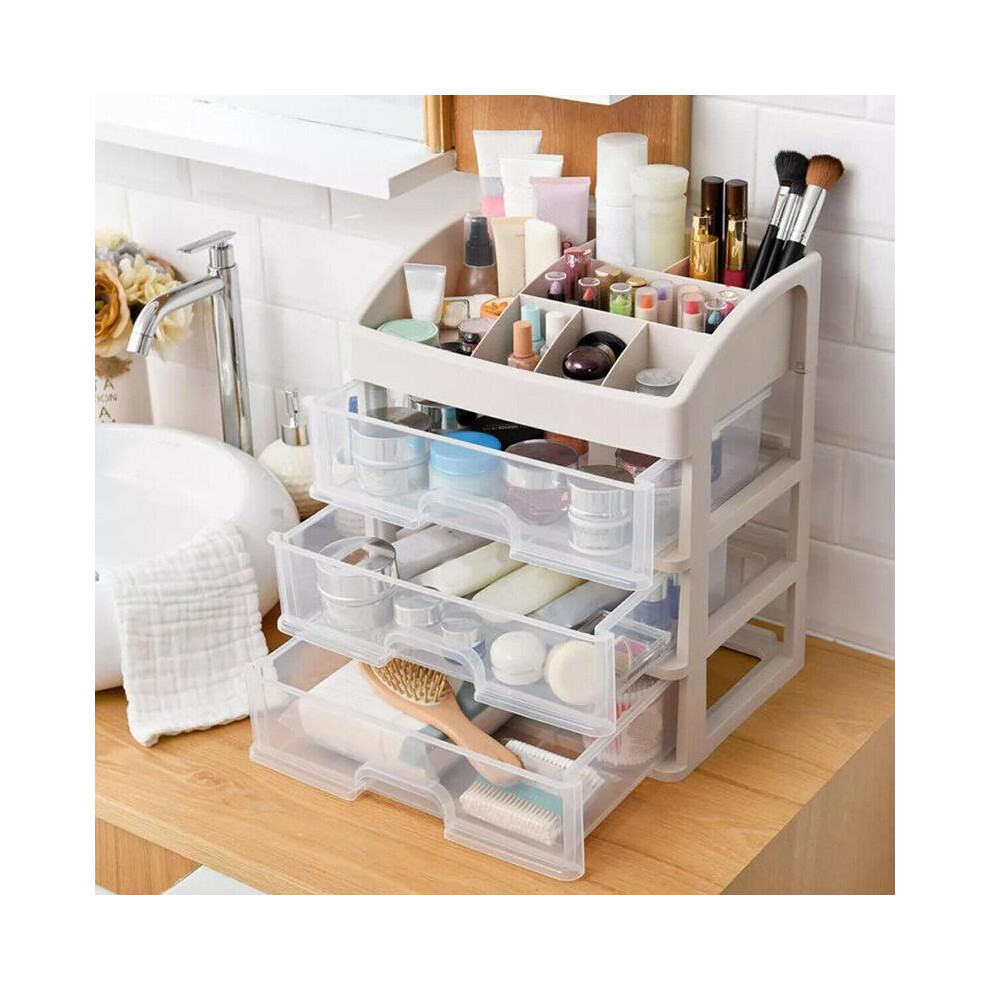 (Transparent) Clear Makeup Organizer - 3-Tier Desktop Drawer Storage | Portable Jewelry & Cosmetic Case (UK) Boxes Gift