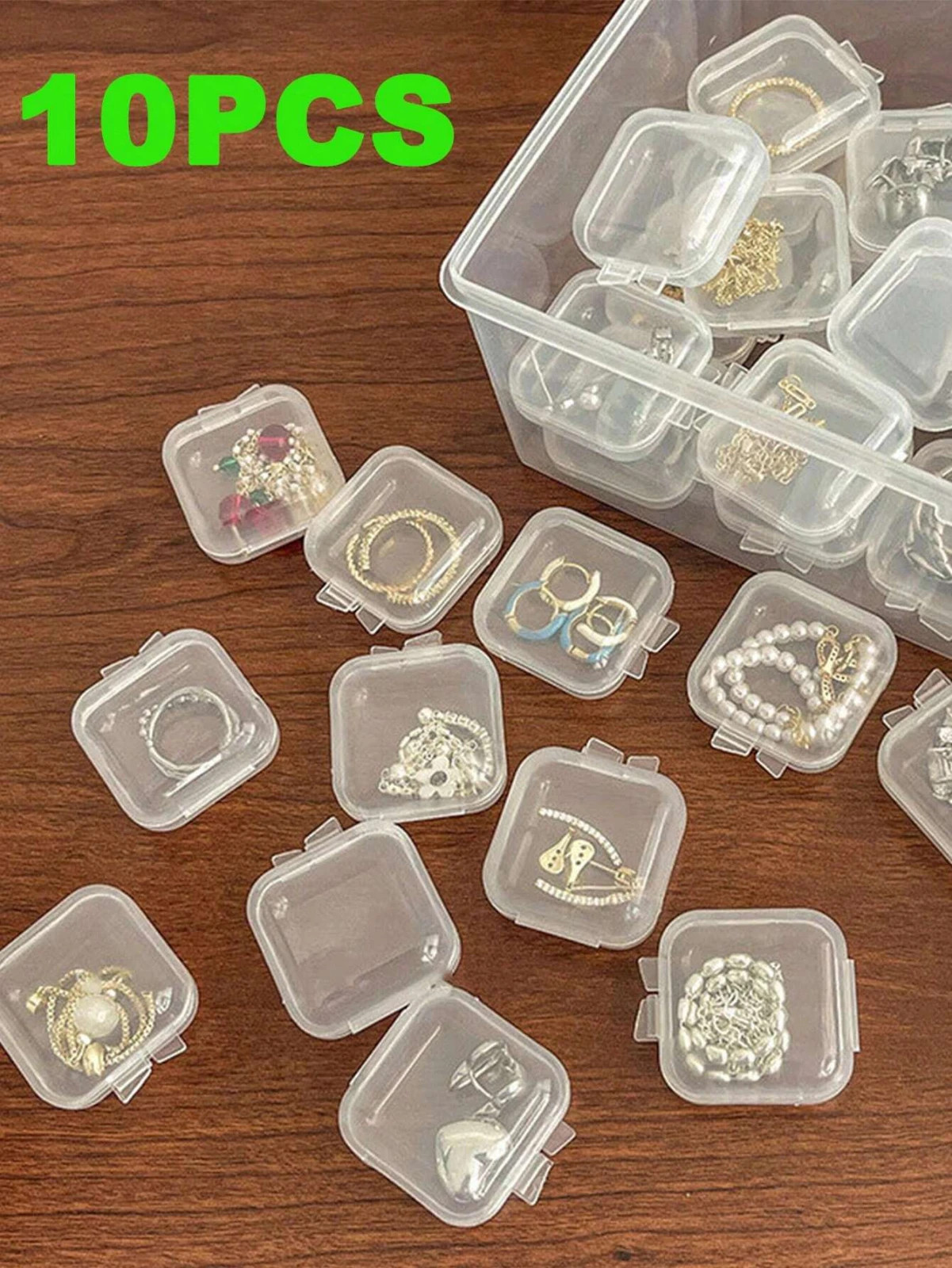 10PCS Mini Transparent Jewelry Storage Boxes with Lid – Portable Organizer -UK