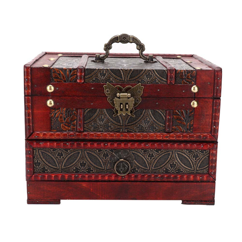 Wooden Jewelry Box Vintage Treasure Chest Retro Storage Organizer with Carved Design Decorative Keepsake Trinket Box for Gifting and Personal Use