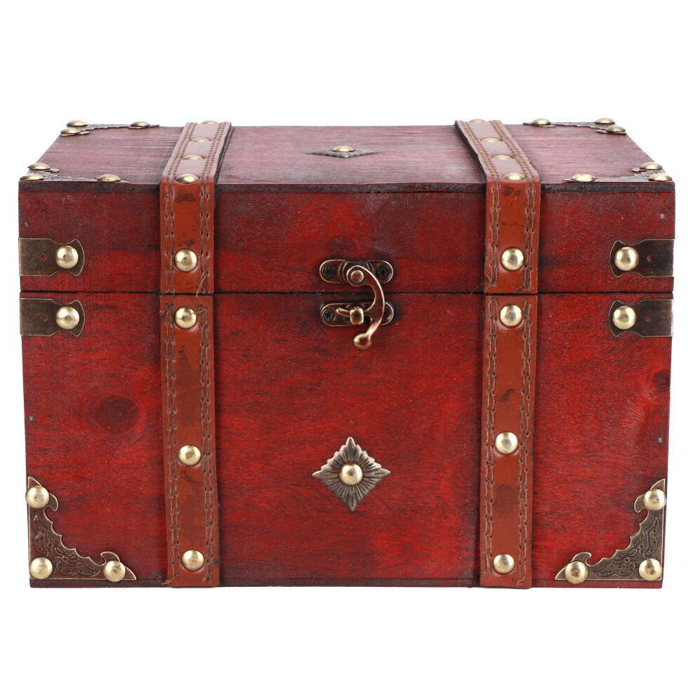 Vintage Treasure Chest Wooden Jewelry Box Decorative Keepsake Storage Box with Handcrafted Carving Retro Trinket Container for Gifting and Holiday Dec