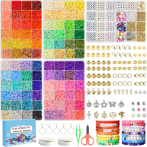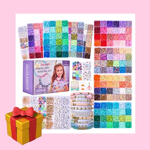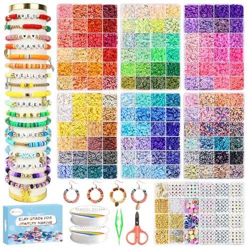 Lynnmos Clay Beads Bracelet Making Kit - 7200 Pcs - Jewellery Making Kit with Flat Round Spacer Heishi Beads - Friendship Bracelet kit for Girls Teens