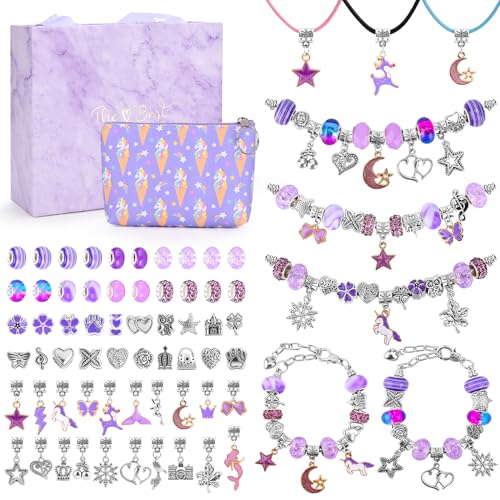 Donaky Jewellery Bracelet Making Kit, Charm Kids Jewellery Sets for Girls DIY Beads for Bracelet Making Craft Kits for Kids 6-12 Years Old Teenage, Purple