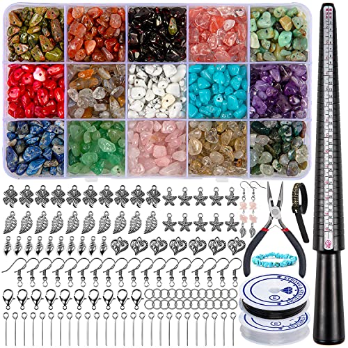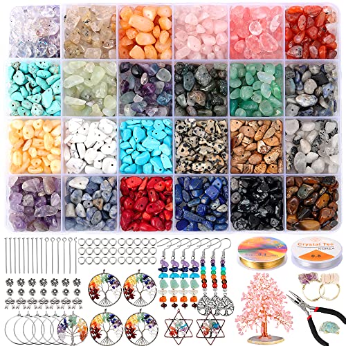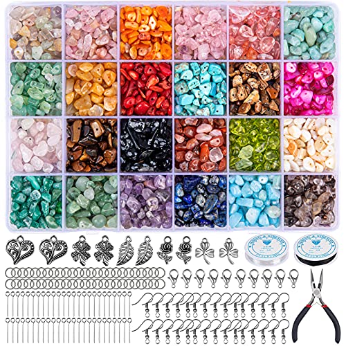 HONGTEYA 1073 Pcs Crystal Jewellery Making Kit Natural Gemstone Chip Beads Irregular Crushed Crystal Pieces 5-7mm Stone Bead Drilled Beads