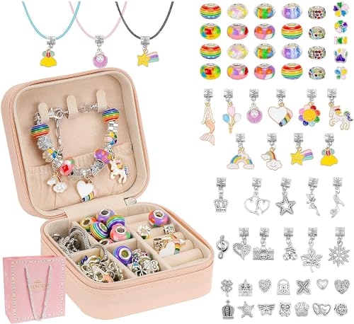 Girls Charm Bracelet Making Kit - 63pcs DIY Arts and Crafts Set, Jewellery Making Kit Gift for Kids, Birthday for 8-12 Year Old Teenage Girls, Top Xmas Gift of 2024