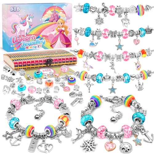 BIIB Bracelet Making Kit, Girls Birthday Presents 5-12 Year Old, Unicorn Gifts for Girls, Gifts for 5 6 7 8 9 10 11 12 Year Old Girls, Arts and Crafts for Kids, Girls Charm Jewellery Making Kit