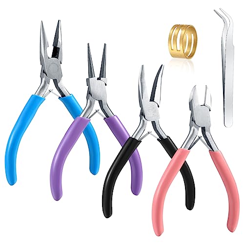Modacraft 5 PCS Jewellery Pliers Kit with Spring, Jewellery Making Plier Set with Needle Nose Plier, Round Nose Plier, Bent Nose Plier, Wire Cutter, DIY Plire Jewellery Making Kit for Girls