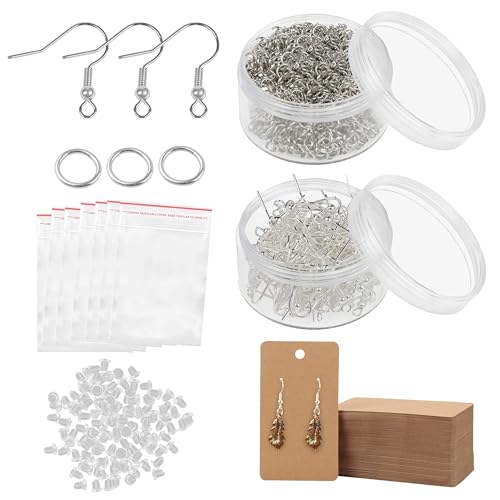 HANDI STITCH Earring Jewellery Making Supplies Kit with Jump Rings, Fish Hooks, Backs, Display Cards and Bags (900 Pieces) - Findings Starter Set for Jewellery Repair