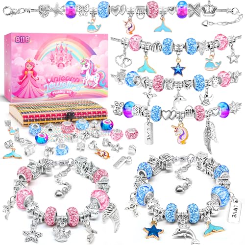 BIIB Gifts for Teenage Girls, Charm Bracelet Making Kit Arts and Crafts for Kids Stocking Fillers for Teenage Girl Christmas Gifts, Unicorn Gifts for Girl Jewellery Making Kit