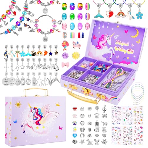 TCJJ DIY Charm Bracelet Making Kit for Girl with Unicorn Storage Box, Girls Jewellery Making kit Include Beads, Necklace, Ring, Christmas Birthday Unicorn Gifts Toy for Girls 4-12