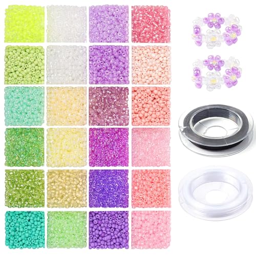 3mm Glass Seed Beads for Bracelet Making Kit,4800pcs 24 Colors 8/0 Small Pony Tiny Beads for Embroidery Necklaces Earrings Crafting, Jewellery Making Kit