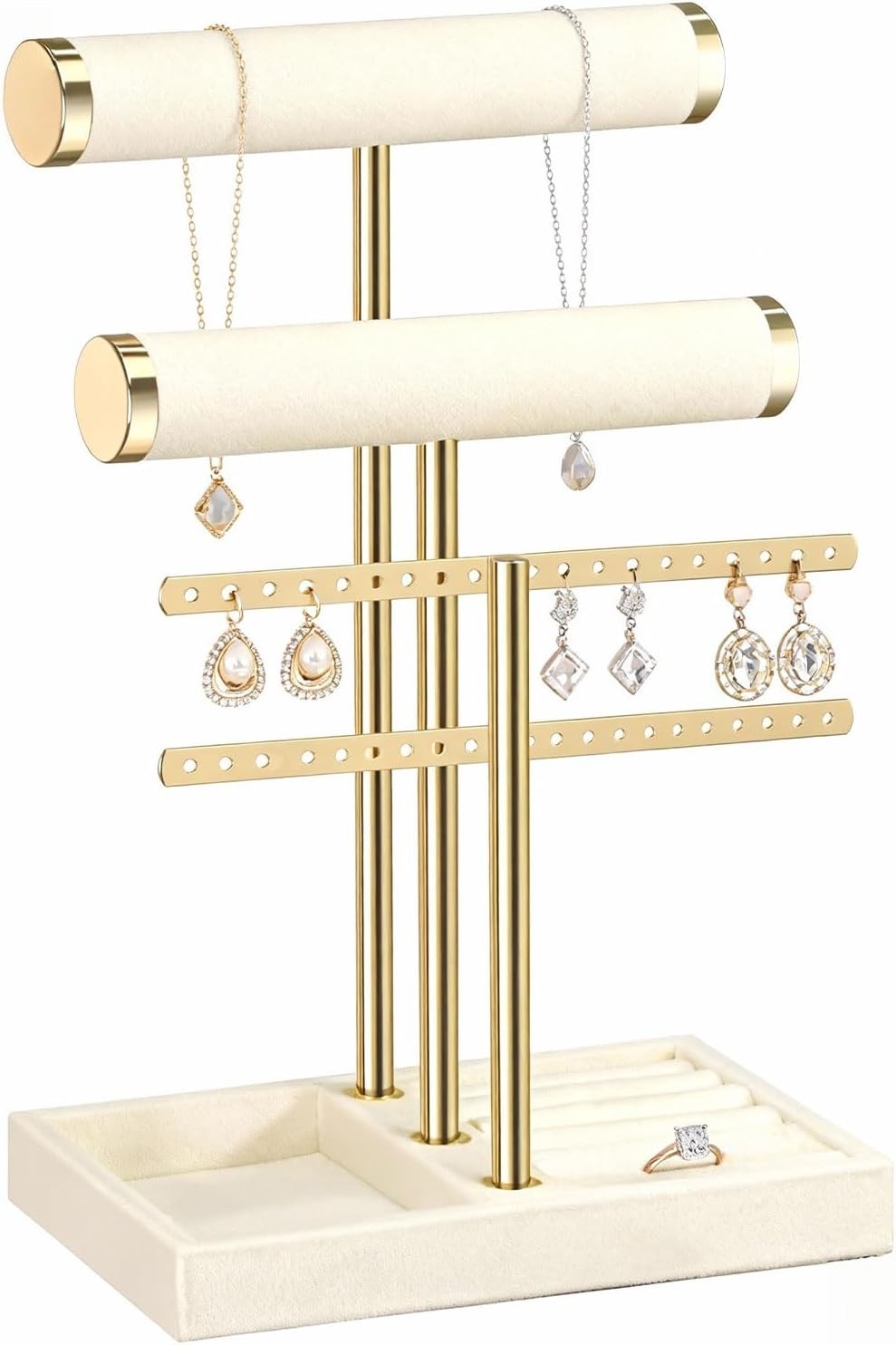 Jewellery Organiser Gold Jewellery Stand, 4-Tier Earring Holder Earring Display Stand, Earring Storage Organiser Necklace Stand Bracelet Holder Ring